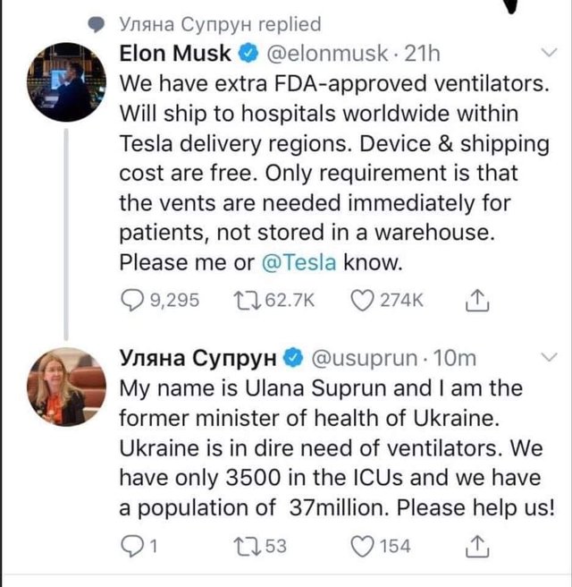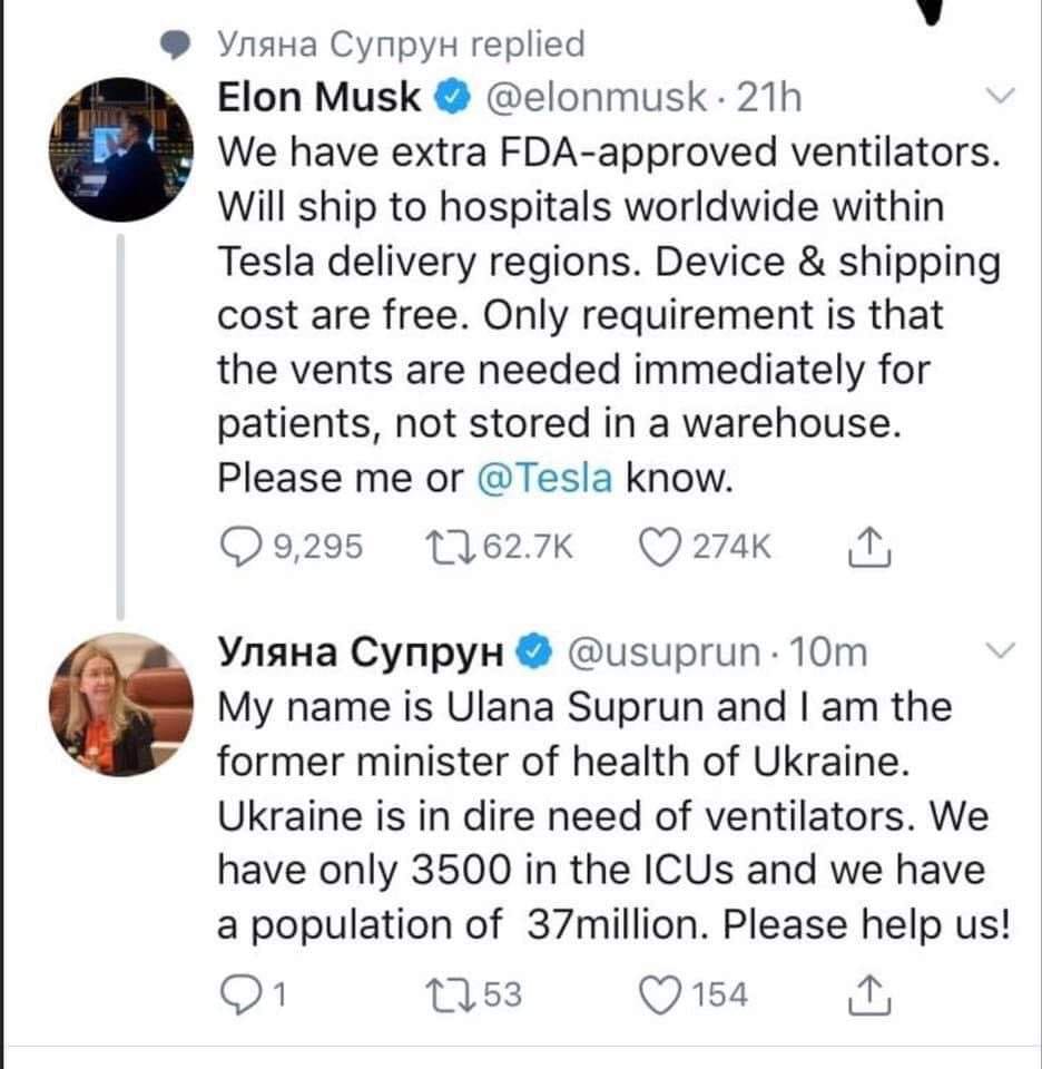 Так, вам не здалося, вона просить саме апарати ШВЛ в Ілона Маска.