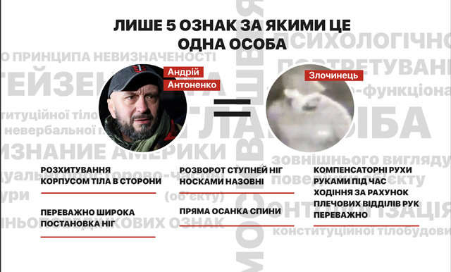 ❌Пан Антоненко був ідентифікований двома різними експертизами — психологічною експертизою невербальної поведінки, проведеною експертами КНДІСЕ, і криміналістичним аналізом ходи міжнародного експерта “Івана Бірча”