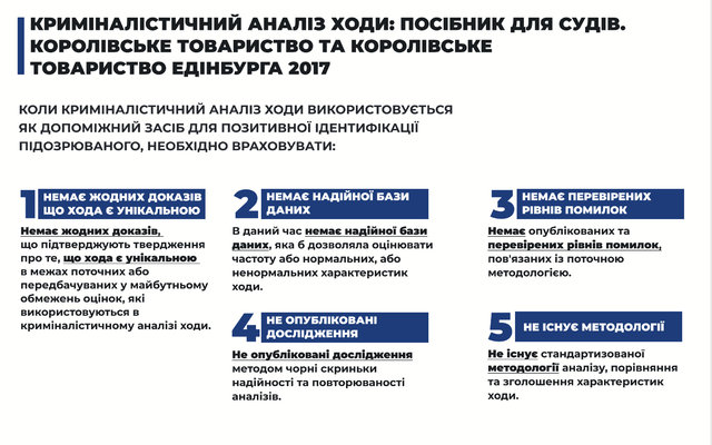 ✅Висновки криміналістичного аналізу ходи Айвона (не Івана) Бірча були вкрай обережними, з великою кількістю застережень, зокрема з прямим посиланням на посібник для судів, де написано, що немає жодних доказів, що хода є унікальною; немає надійної бази даних; немає опублікованих та перевірених рівнів помилок; не опубліковані дослідження методом чорної скриньки надійності та повторюваності аналізів; не існує стандартизованої методології аналізу, порівняння та зголошення характеристик ходи
