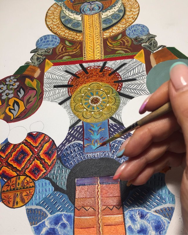 Моя мистецька концепція полягає в ідеї об’єднання традиційного та сучасного. Після багаторічного вивчення різноманітних технік мені стало цікавим, що буде, якщо їх поєднати. Злиття неподібного у єдине ціле.