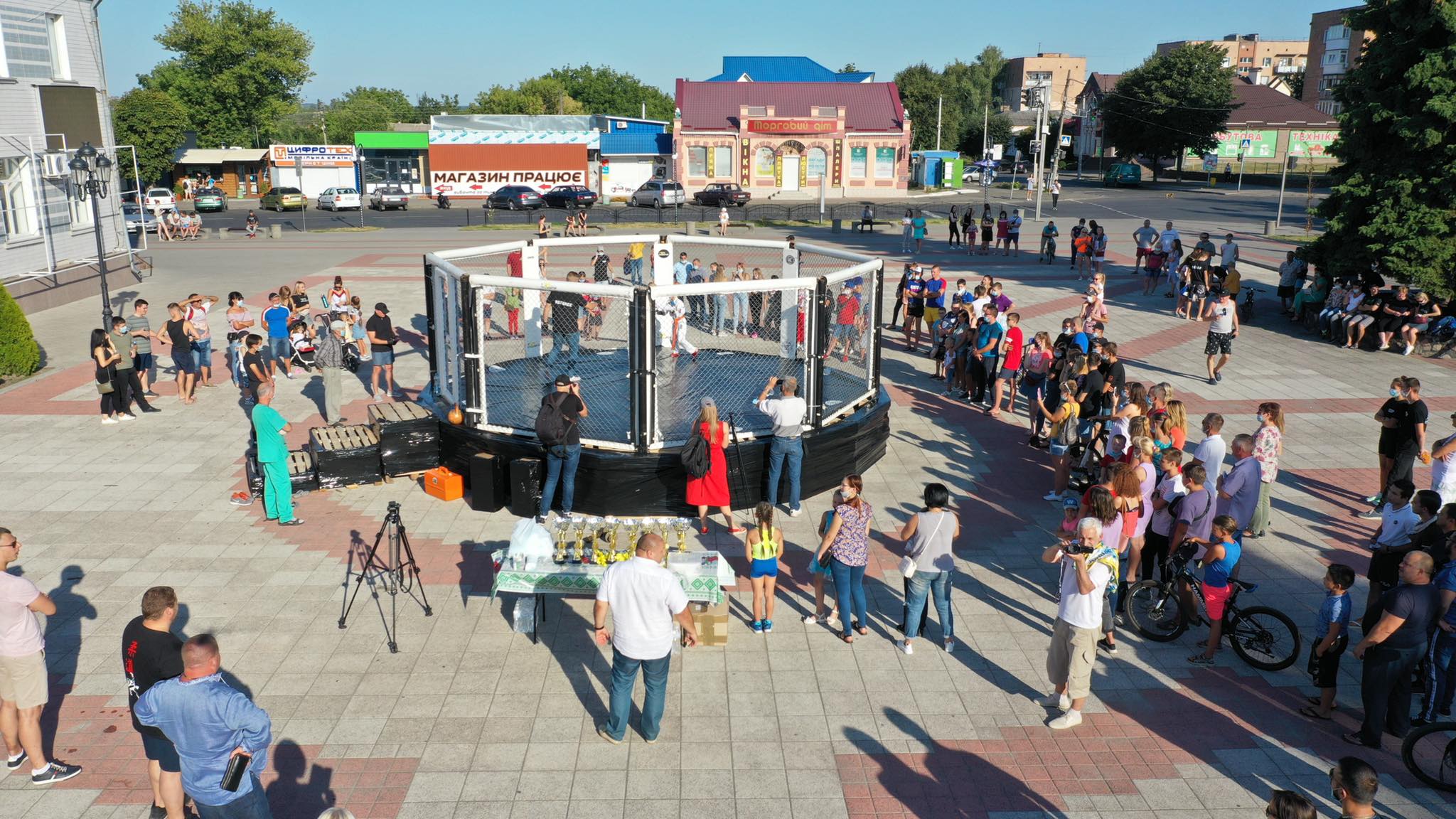 23 серпня в Корсуні-Шевченківському відбувся масовий захід за підтримки народного депутата по нашому 196-му в/о Андрія Стріхарського. Ніякі заборони і статистика не вплинули на київських організаторів "Спортивної Черкащини". І попри те, що їм так і не вдалося витиснути "правильний" протокол з місцевої комісії ТЕБНС, в місто привезли учасників з інших регіонів, на центральній площі міста встановили ринг-октагон та сцену, через соцмережі зібрали глядачів.