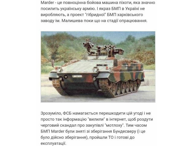 Хоча таке явище, як «БМП Пашинського», також мало місце, але це інша історія. Пашинський працював над питання отримання Україною інших БМП - важких штурмових німецьких «Мардер». Це було в 2015 році, коли блокада військових постачань в Україну була особливо тотальна. Було домовлено зробити поставку 300 БМП через Болгарію. Продавали нам їх взагалі за копійки - 48 тисяч євро штука. Уявіть собі, лише 48 тисяч за штуку! До речі, купували ми їх, як "пожежні машини".
