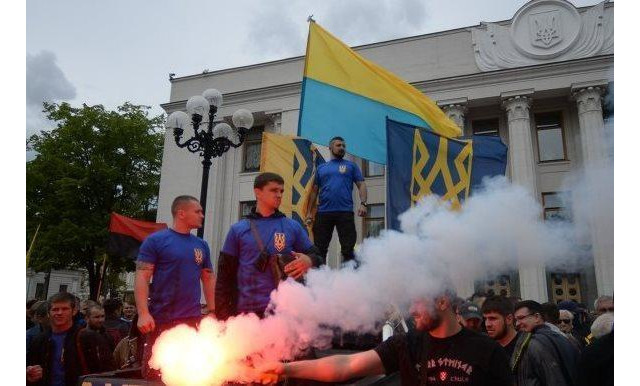 📷 На фото – Цивільний Корпус «Азов» під Верховною Радою виголошує Вимоги Нації. Ця акція унеможливила план Мореля у 2016, до нього під назвою «план Штайнмайєра» повернулися лише через три роки, але через націоналістів його реалізація також досі гальмується. Київ, майдан Конституції, 20.V.2016.Більше в моєму особистому телеграм-каналі: https://t.me/NKruk
