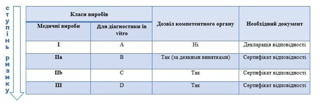 Відповідно до нового Положення ЄС про медичні прилади 2017/745 та Технічних регламентів України, проводиться класифікація медичних приладів відповідно до ступеню ризику: