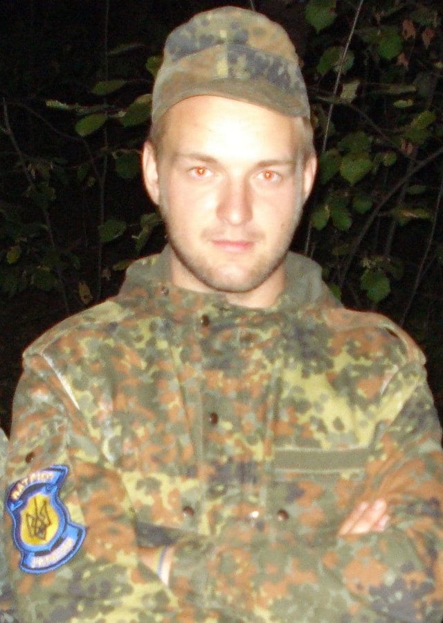 На фото – 20-річний Байда в однострої «Патріоту України». Всеукраїнський організаційний вишкіл. Ліси у північних околицях Харкова, серпень 2011.