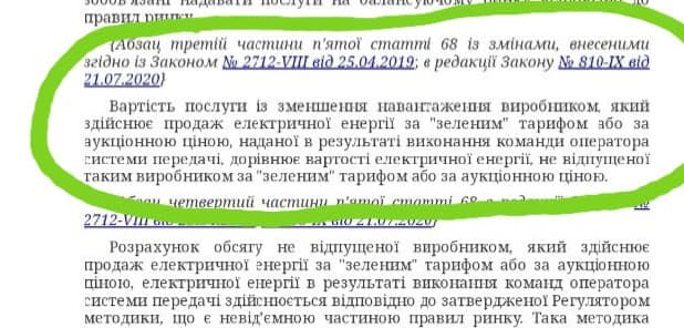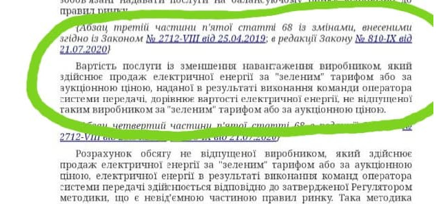 Відповідні правки до 68 статті закону «Про ринок електричної енергії», яка була проголосована 21 липня минулого року, купівля НІЩО в законі називається купівлею «послуги зі зменшення навантаження виробником». Далі в цьому законі читаємо, що держава «платить за утримання від виробництва електричної енергії» за «зеленим» тарифом згідно затвердженої регулятором методики. Вона була затверджена 11 листопада, і головна її родзинка – обсяг «відмови від генерації» приватний виробник розраховує САМ, а потім його розрахунки перевіряє чиновник.