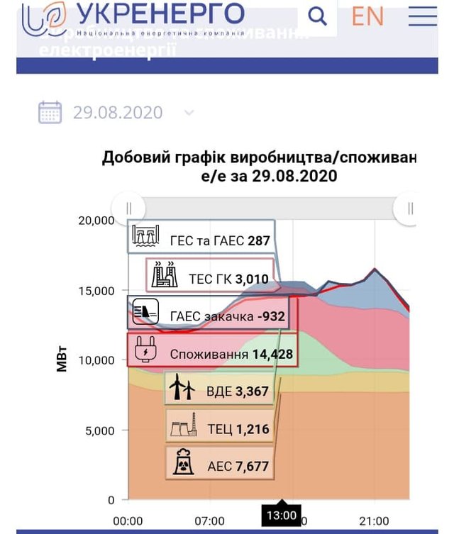 Отож, готуючись до 29-того серпня, коли згідно прогнозу погоди мусив бути тотально сонячний день, «Укренерго», щоб прийняти в систему рекордний об’єм сонячної зеленої генерації, підготувалося. В 0.00 була дана команда на відключення цілого енергоблоку АЕС, а далі команда на нічне осушення державних ГАЕС, щоб в пік генерації сонця направити зайву енергію «зелених» на закачку всіх водосховищ країни.