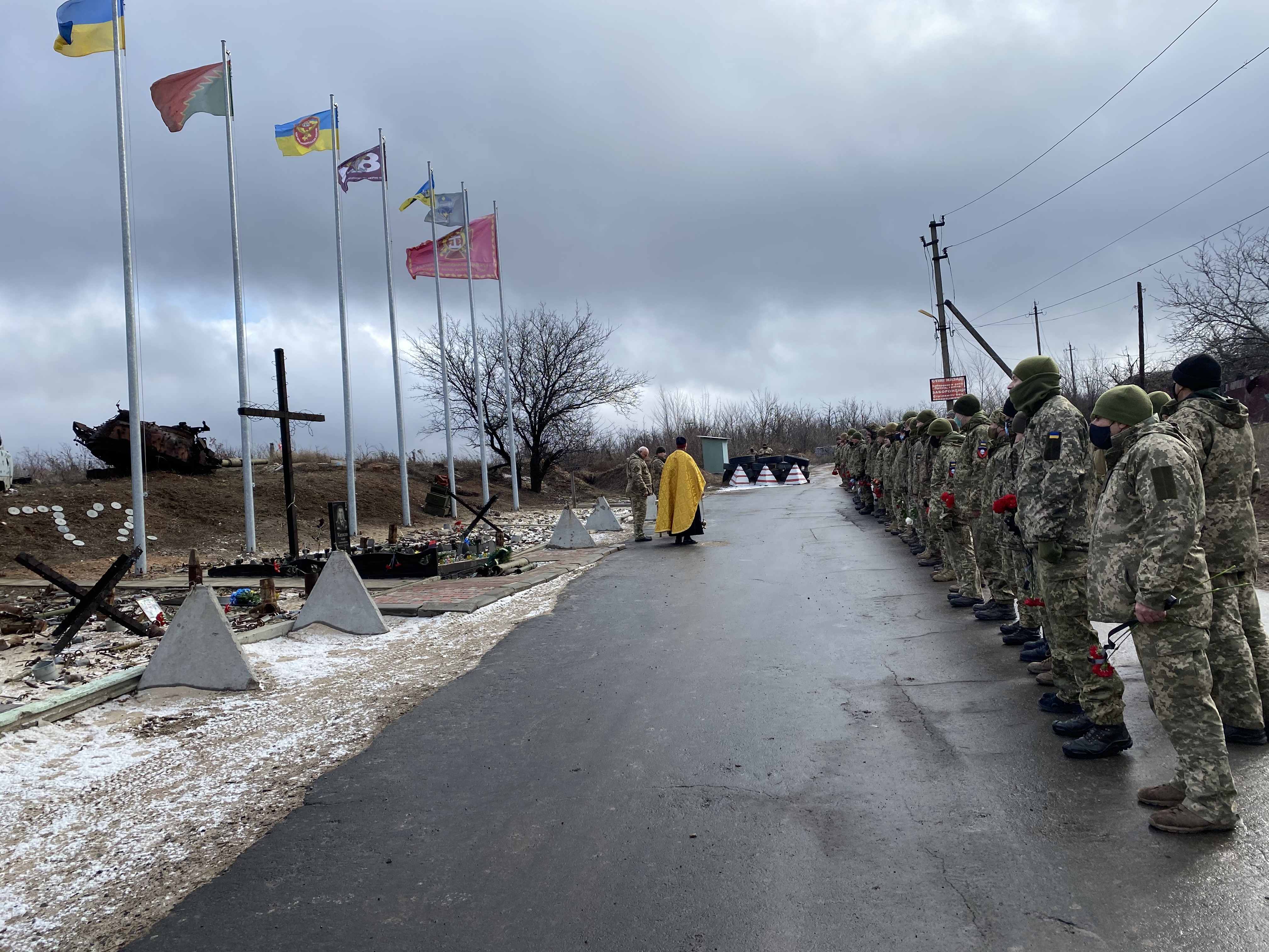 Місце стало знаковим і важливим. Покласти тут квіти, помовчати, згадуючи загиблих, передати подумки їм привіт від родин, які поки не доїжджають в ці місця – за 300 метрів починаються позиції української армії, видно ясинуватську розв’язку, яка не під нашим контролем, – на це волонтери, журналісти, військові обов’язково знаходять час. Отак стихійно виник сучасний пам’ятник цій війні.