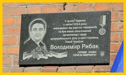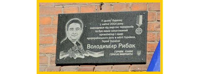 Фото: меморіальна дошка депутату Горлівської міської ради Володимиру Рибаку