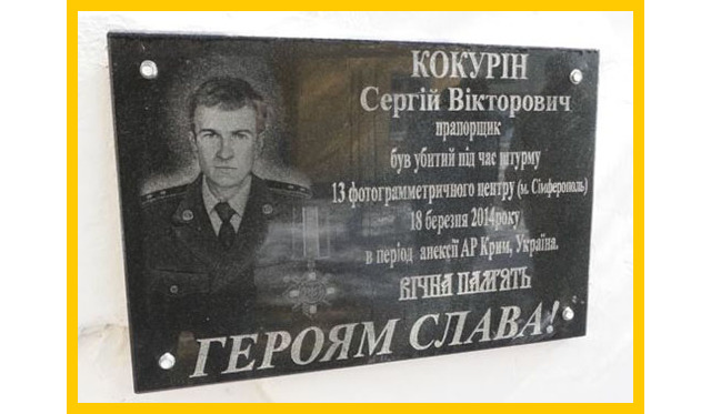 Фото: меморіальна дошка прапорщику Збройних сил України Сергію Кокуріну