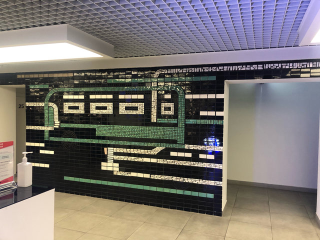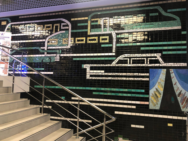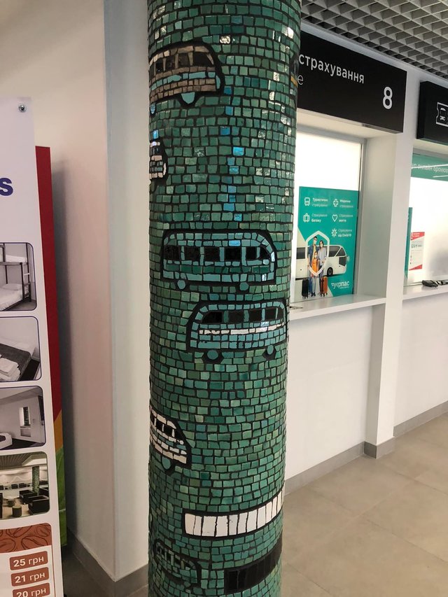 Ну, і видихнув з полегшенням - мозаїки за авторства Ади Рибачук та Володимира Мельниченка залишилися. У 1960–1961 роках вони зробили для інтер’єрів вокзалу близько 10 мозаїчних керамічних панно. Зображені на них київські пейзажи, столичні автотраси, автомобілі та автобуси. Тонка і велична робота.