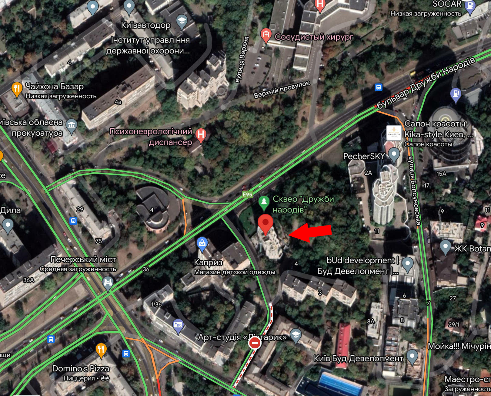 Є питання і про землю під садибою. Земельна ділянка площею 0,4313 га. знаходиться в комунальній власності громади Києва та 16.05.2019р. передана Київською міською радою ТОВ "Юпітер Фінанс" в оренду на 10 років для обслуговування та експлуатації існуючої будівлі. Це означає, що будувати на орендованій комунальній землі власник будівлі НІЧОГО не може, ні замість садиби, ні поруч з нею!