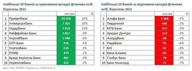 Але що цікаво, та не дуже приємно, серед топ-10 банків за відтоками у березні, окрім Альфи, решта банків це приватні українські. Звичайно, кожен зі своєю специфікою, це можна про кожен дуже довго говорити.