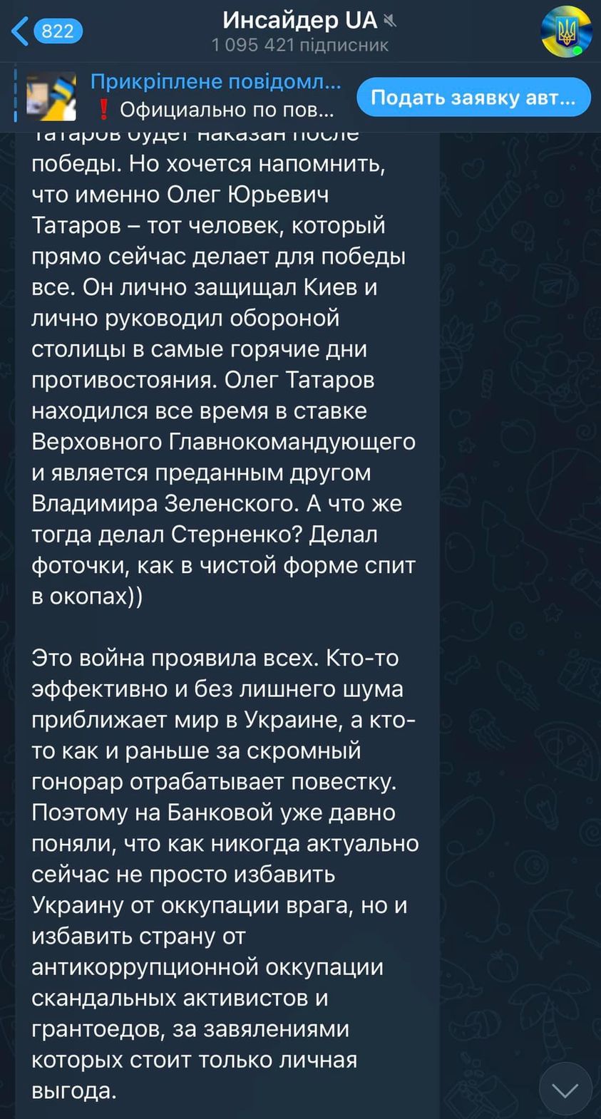 Инсайдер UA ???? Татаров должен быть наказан замысли делишки грязные!!