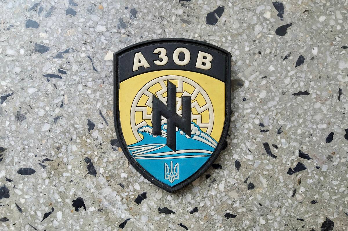 У 2014 році тоді ще батальйон АЗОВ мав відмінний від нинішнього шеврон. На щиті класичної форми були присутні морські мотиви Приазов'я, а українські кольори розміщувались в жовто-синьому порядку. Дехто з ідеологів інтерпретував це у значенні перевернутого прапора, як символ того, що добровольці «готові воювати навіть без офіційної підтримки влади».