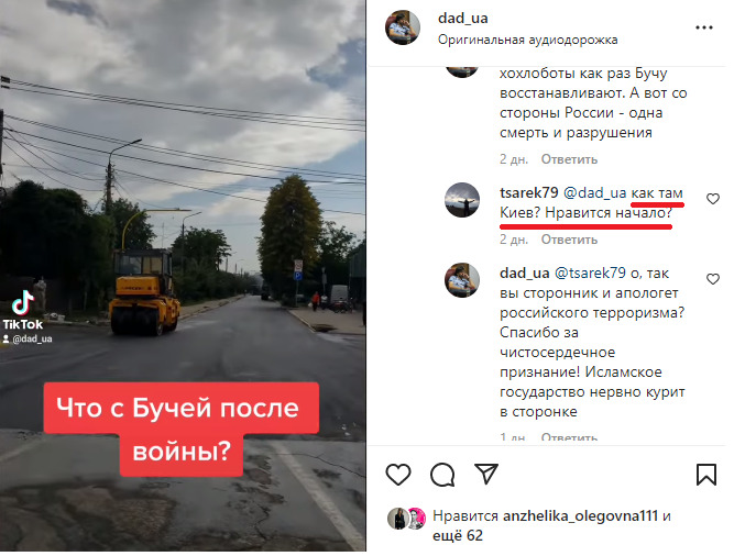 Рашист упивается вседозволенностью. Он видит страдания и гибель обыкновенных жителей Киева, но вместо покаяния (о чём это я?) лишь может ехидно написать: "Нравится начало?". Ведь "можем повторить!". И будьте уверены, при возможности он повторит. И Бучу, и Изюм, и Быковню. Уровень насилия будет прямо пропорционален объёму заранее "отжатой" и на скорую руку выпитой горилки. Кроме того, рашист радуется, когда его некоторые украинские оппоненты снисходят на его уровень (в процессе борьбы с драконом сами становятся драконами) и охотно одобряют удары по мирным россиянам. Это даёт ему прекрасный козырь бить по мирным украинцам и далее.