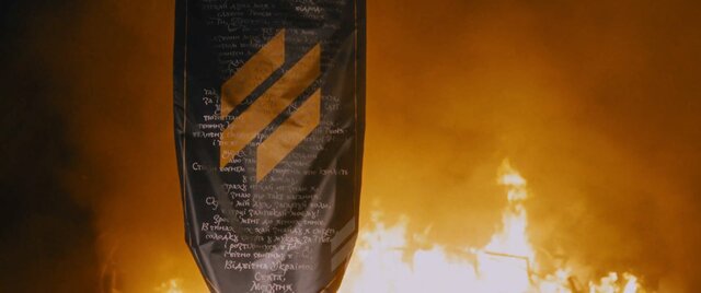 На синіх знаменах 3ОШБ - золота Ідея Nації, в штурмовому накресленні. Штурмова руна веде в бій воїнів Nації на шляху здобуття Великої України!