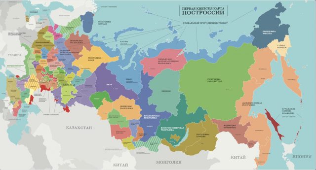 Запропонована вам карта є нашою візією майбутнього устрою построссійського простору. Ми не виключаємо, що кордони деяких нових незалежних держав будуть переглядатися в процесі дезінтеграційних змін у Постросії. Можливо, що в якийсь момент деякі сусіди пред’являть на цьому просторі свої територіальні претензії з метою відновити історичну справедливість.