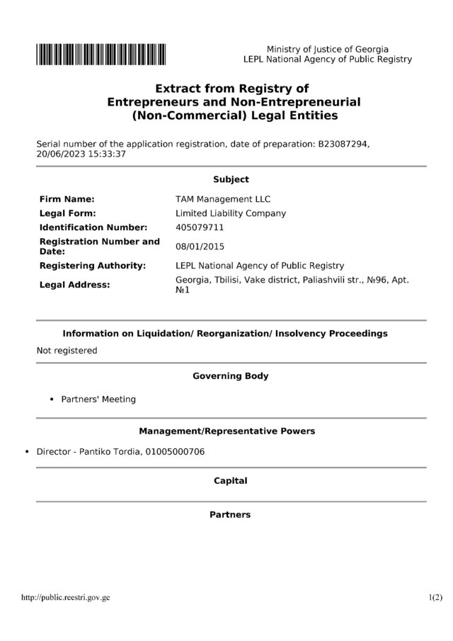 Ну і головне. TAM Management LLC - грузинська компанія, яка орендує частину виробничої площі на Тбіліському авіазаводі (TBILAVIAMSHENI). Частина майнового комплексу авіазаводу переданий в управління TAM Management за спеціальними рішеннями уряду Грузії, як стверджує нинішній директор TAM Management Пантіко Тордія, за особистим сприянням Бідзіни Іванішвілі. Сомхішвілі особисто визнавав, що авіаційне підприємство належить йому. Згідно даних реєстрів, компанія на 50% належить TAM Management Group, яка в свою чергу належить десятку фізичних осіб - громадян Грузії. Ще 50% належать кіпрській BARGUZINO ENERGY TRADING LIMITED - тій самій, що фігурує в судовій справі 910/13727/19 проти “Київ-Терміналу”. Про це свідчать дані публічних грузинських реєстрів.