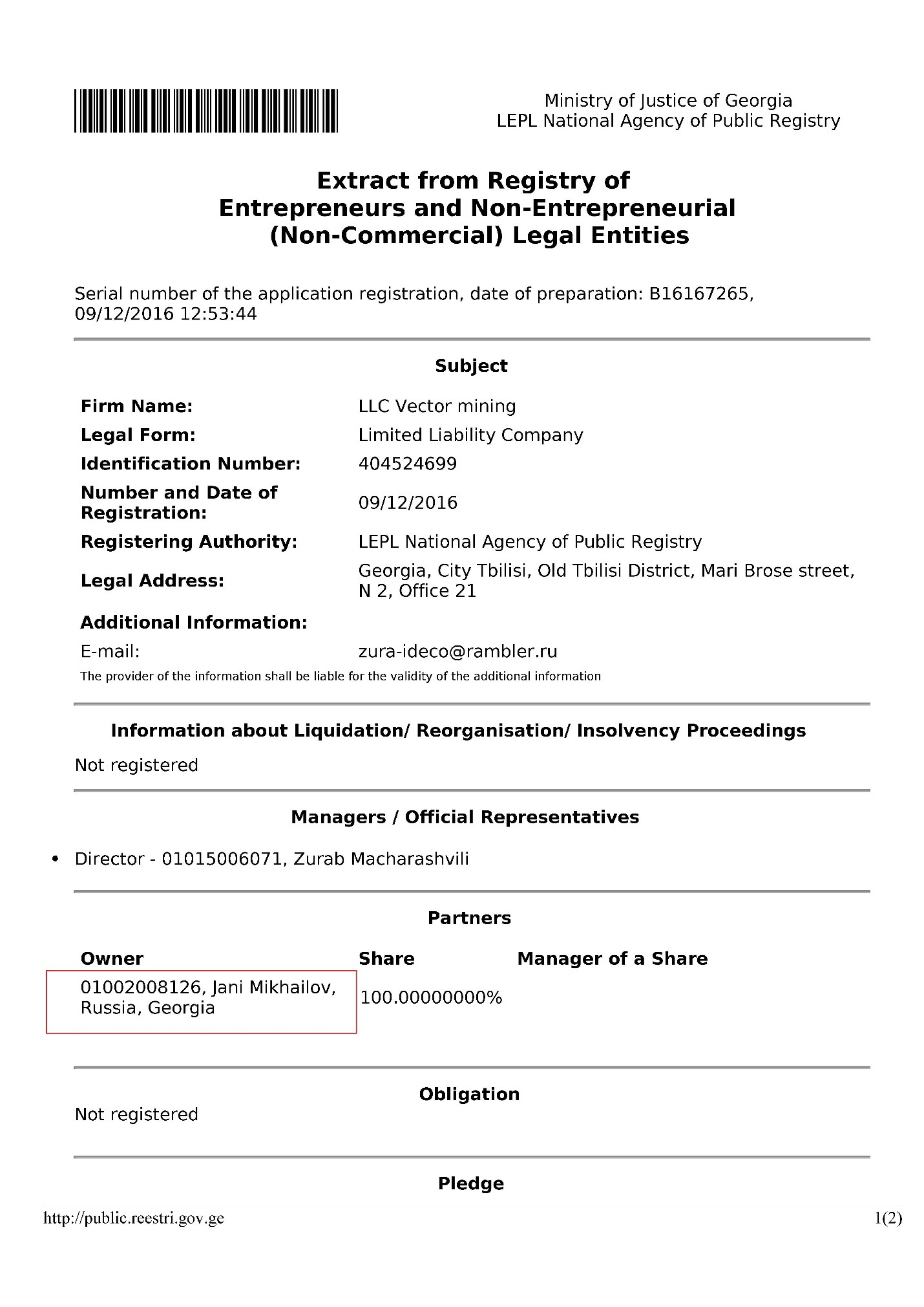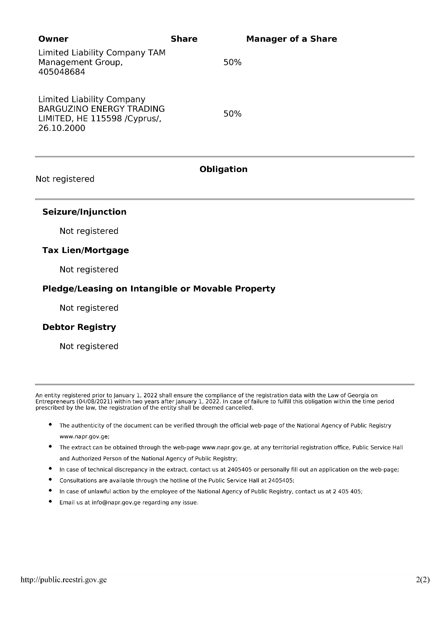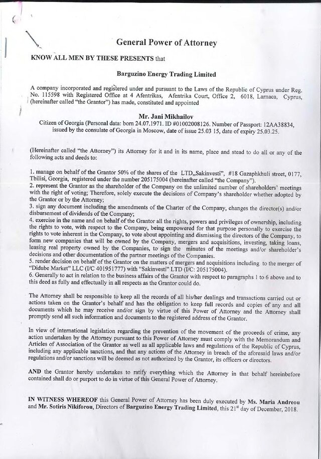Однак проблемою у таких випадках є необхідність виписування генерального доручення на особу, яка представляє інтереси офшору. Зазвичай це або сам власник, або його близька довірена особа. Грузинське законодавство вимагає внесення таких документів у реєстри. Щонайменше з 2010 до 2019 року генеральні довіреності від Barguzino Energy Trading виписувалися на громадянина росії та Грузії Джані Михайлова.