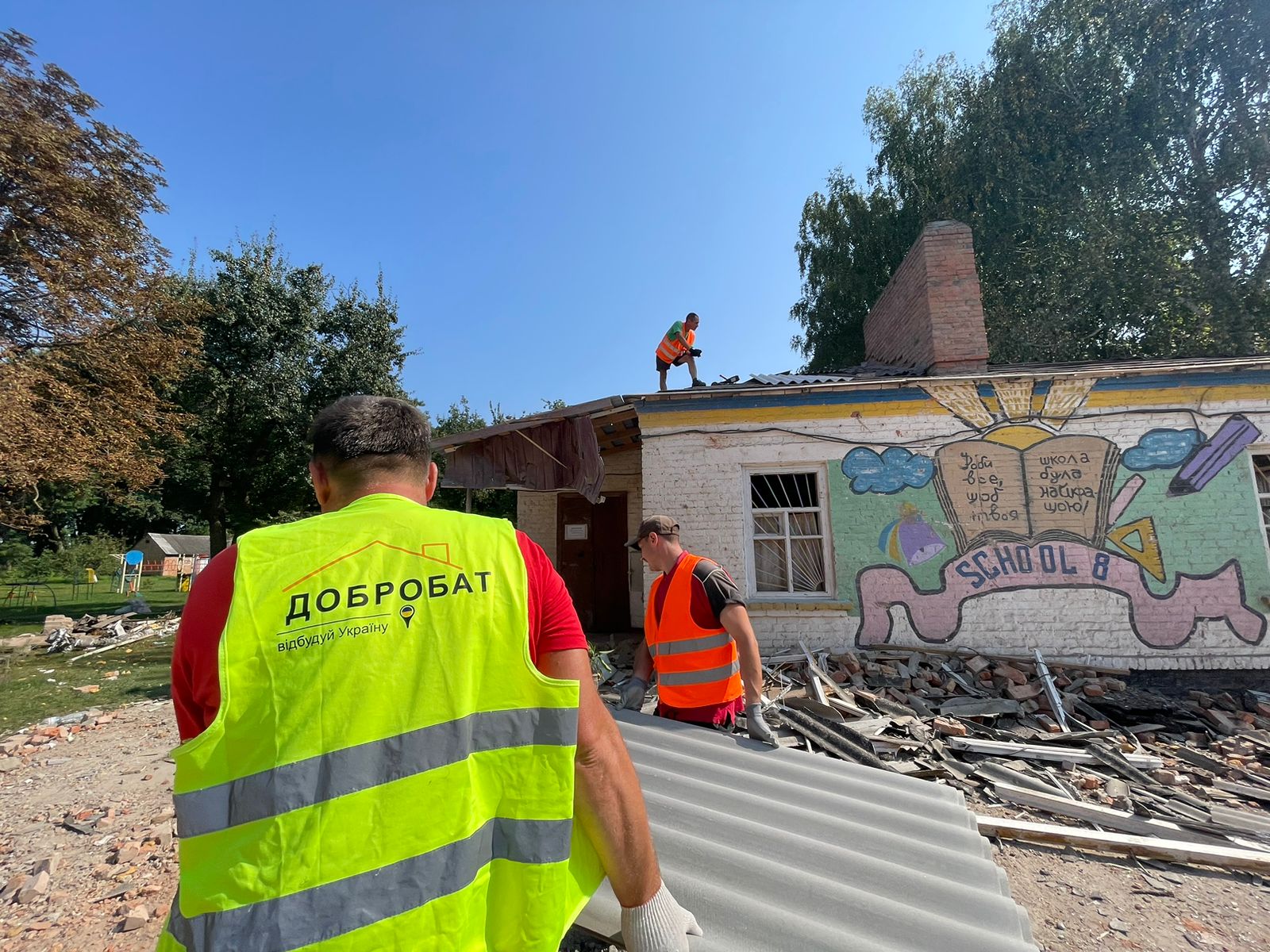 Для Добробату відбудова шкіл - це особлива відповідальність. Наші волонтери працювали на освітніх обʼєктах практично в усіх регіонах, де є осередки Добробату. Зокрема, роменські добробатівці допомагали відновлювати будівлю Гришинського навчально-виховного комплексу в селі Гаврилівка Роменського району. Просто зараз Добробат ремонтує Миколаївську гімназію №7.