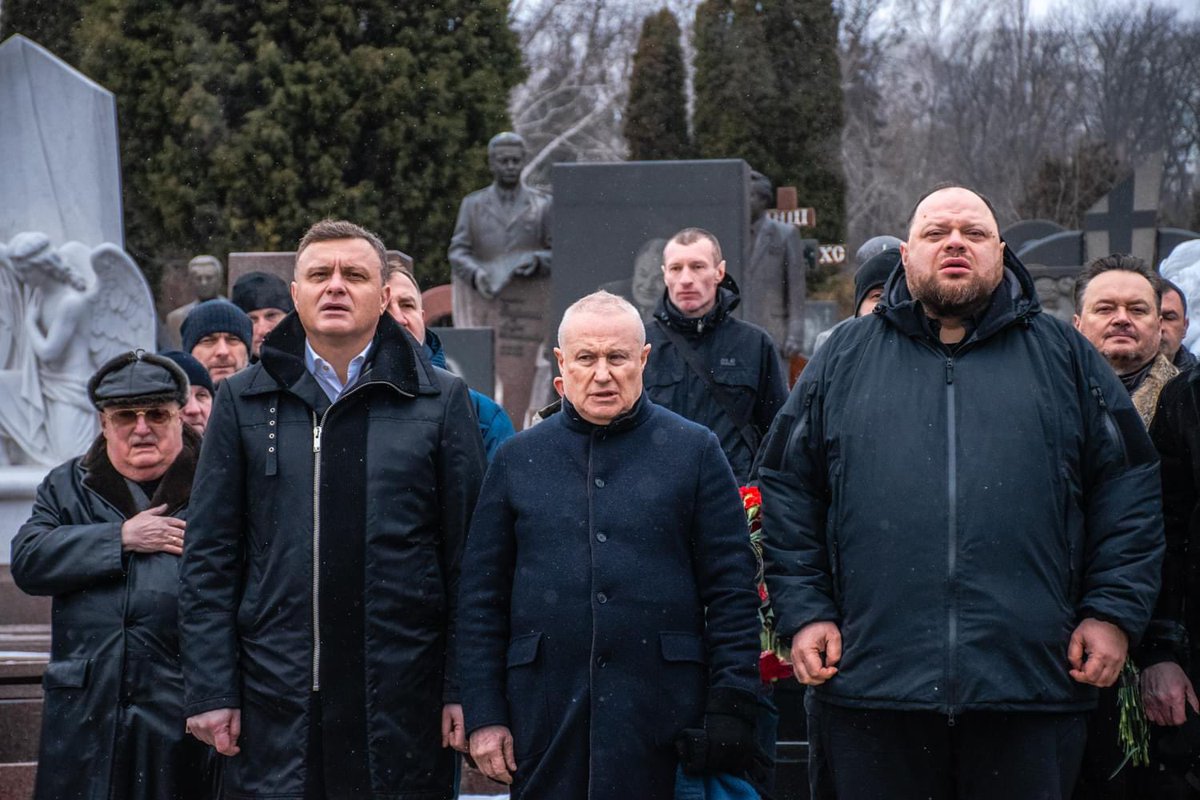 Яка чудова компанія… Голова українського парламенту Стефанчук в компанії нардепів від забороненої проросійської партії ОПЗЖ Льовочкіна та Суркіса відкриває памʼятник на могилі Кравчука, який здав ядерну зброю росії та разом з Медведчуком просував проросійські наративи в Україні.