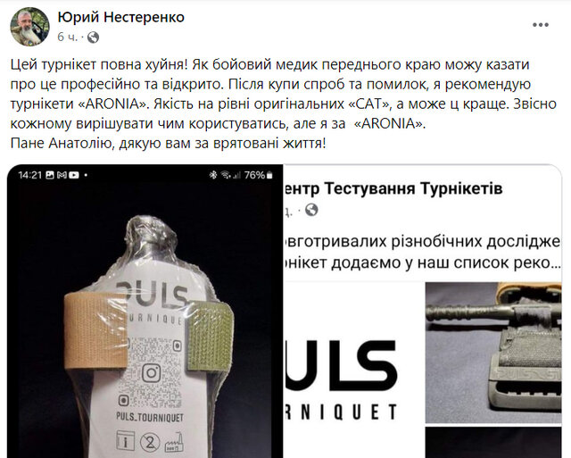 Дивним чином, але всі «рекомендовані» Центром вітчизняні турнікети мають купу негативних відгуків з фронту, і про це я напишу окрему велику публікацію з відео і відповідними скрінами реальних парамедиків і фахівців, а не дифірамбами від «диванних» експертів.