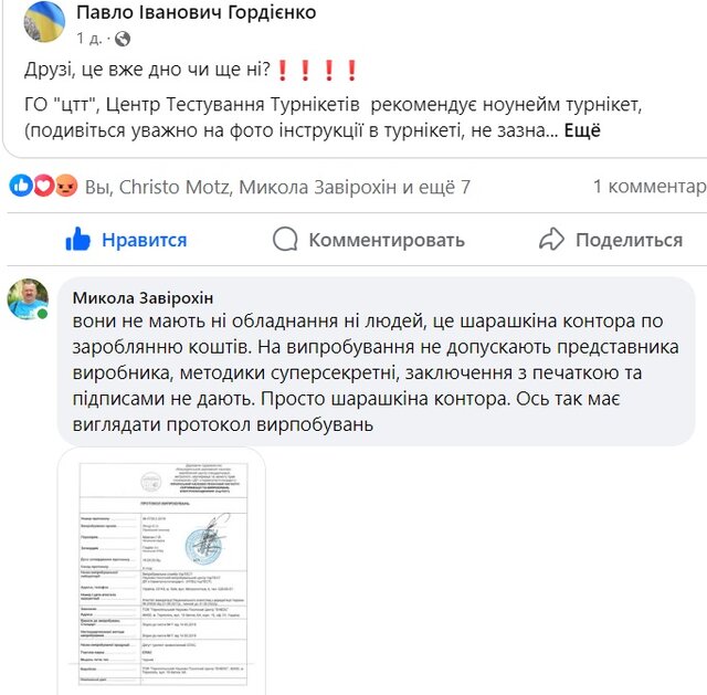 А відгуки про Центр тестування турнікетів залишу у вигляді скрінів. Особисто мені додати нічого. Таких «здивувань» я побачив в мережі і почув від парамедиків велику купу, не буду перенавантажувати мозок читача, залишу лише деякі.