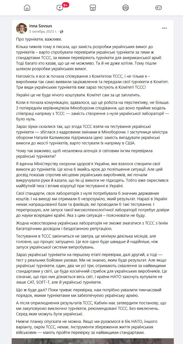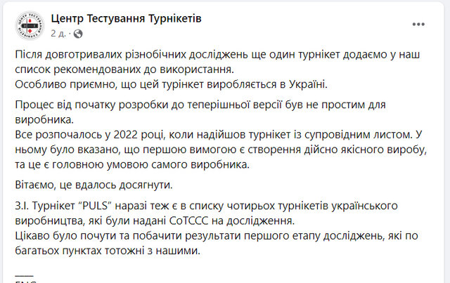 З огляду на власний досвід, вже можу писати історію про розвиток вітчизняних турнікетів, але те що відбувається останнім часом, викликає здивування і обурення. Наприкінці 2023 року депутатка Інна Совсун повідомила, що чотири вітчизняних турнікета СІЧ, ДНІПРО, ПУЛЬС і Yelow&Blue поїхали до комітету ТССС на випробування.