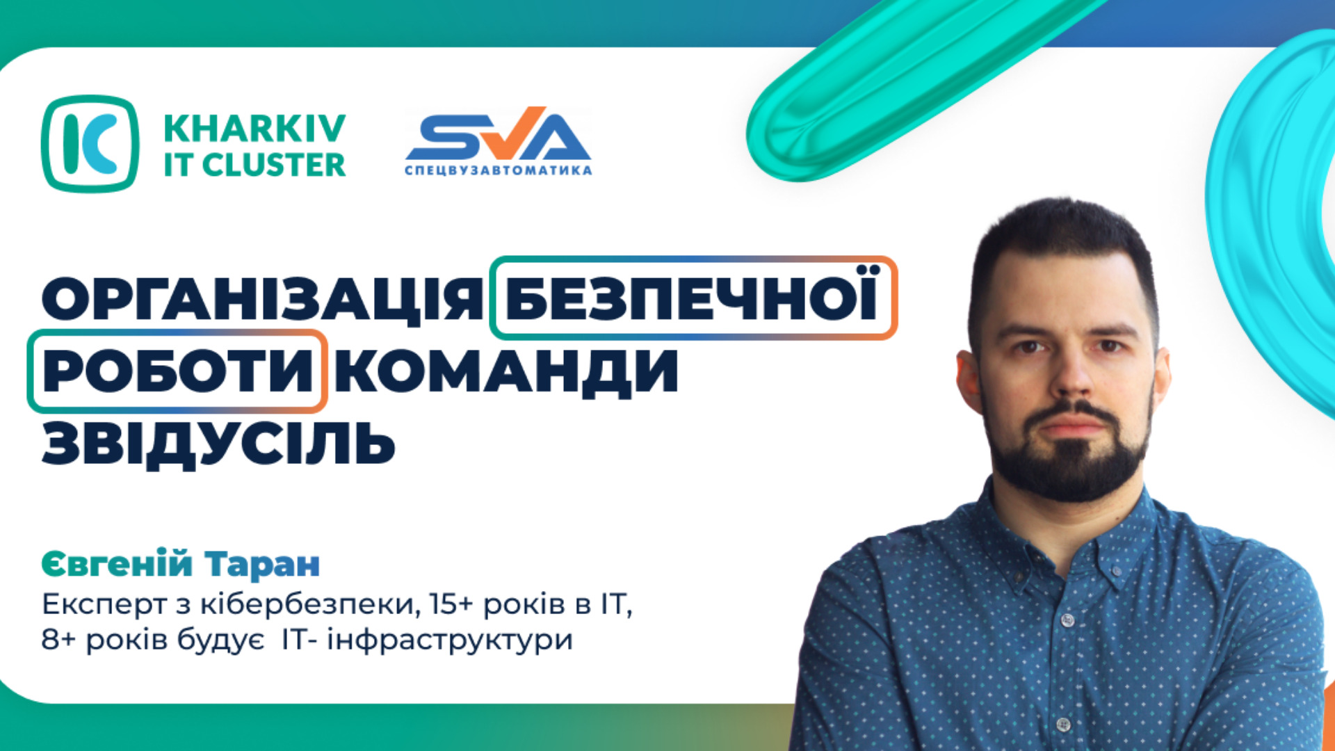 7 лютого на вебінарі за підтримки Kharkiv IT Cluster і компанії СПЕЦВУЗАВТОМАТИКА, Таран Євгеній, експерт з кібербезпеки, розповів, як технічно убезпечити команду, навіть якщо вона розосереджена по всьому світу і які надійні інструменти необхідні для реалізації захищеної мережевої архітектури.