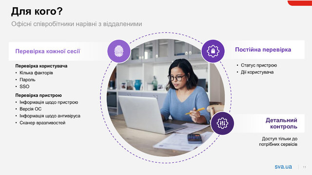 В результаті: даними модулями ми об'єднуємо співробітників з корпоративними/домашніми комп'ютерами та збираємо рішення для того, щоб розподіляти доступ і захищати сервіси, якими б вони не були.