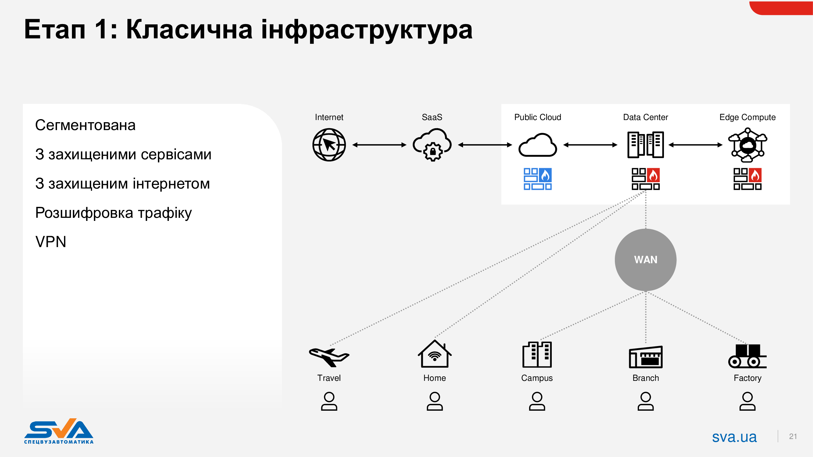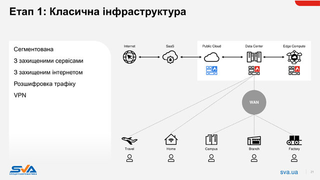 1. Класична інфраструктура (коли обладнання і користувачі підʼєнуються до єдиного дата-центру)