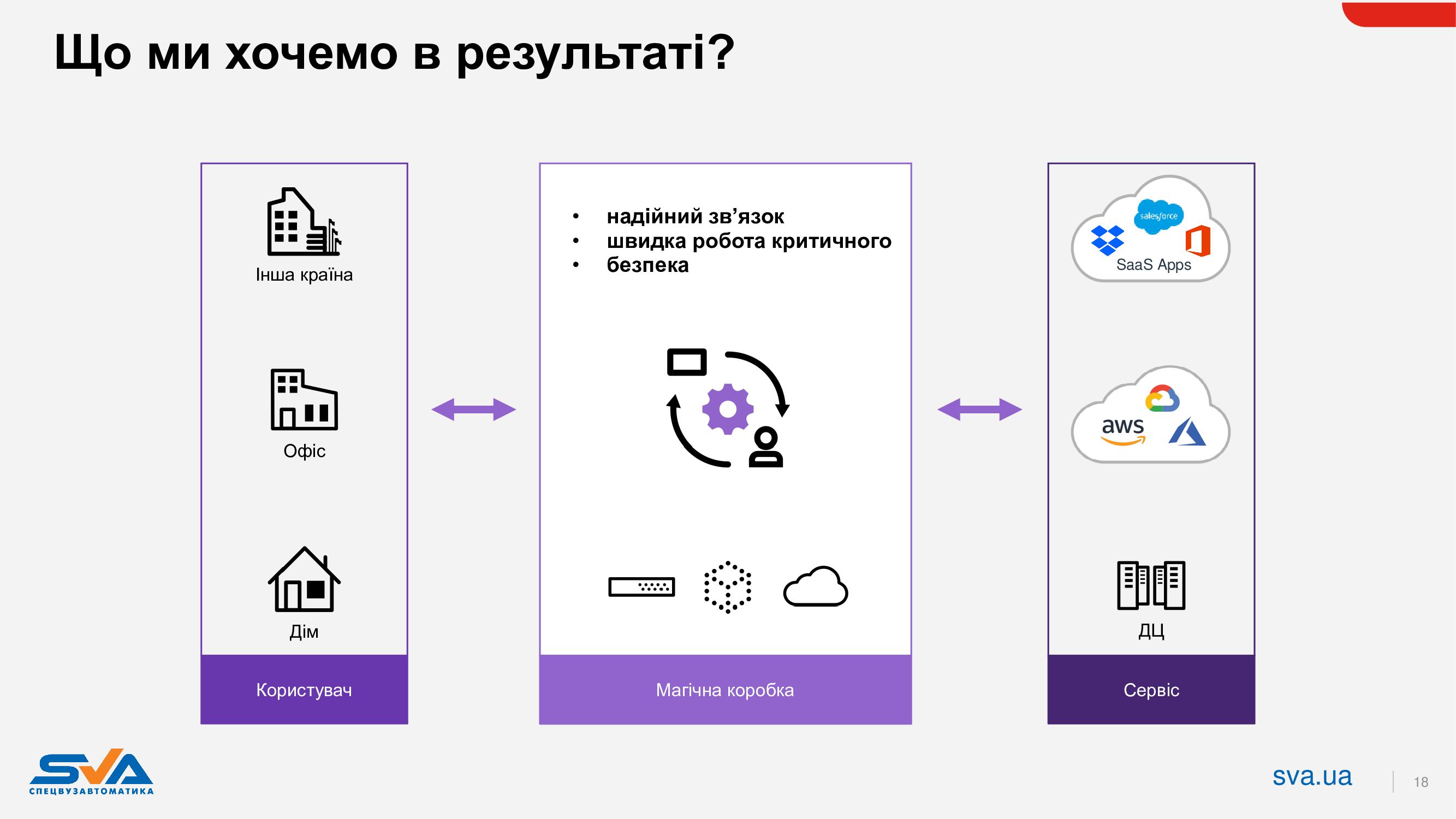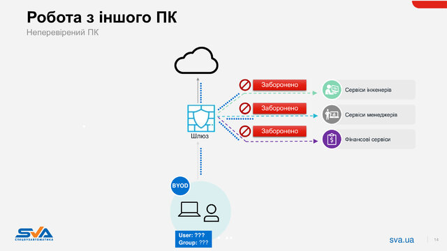 - Віддалені співробітники. Отримують доступ до сервісів та SaaS.