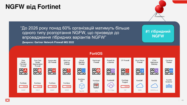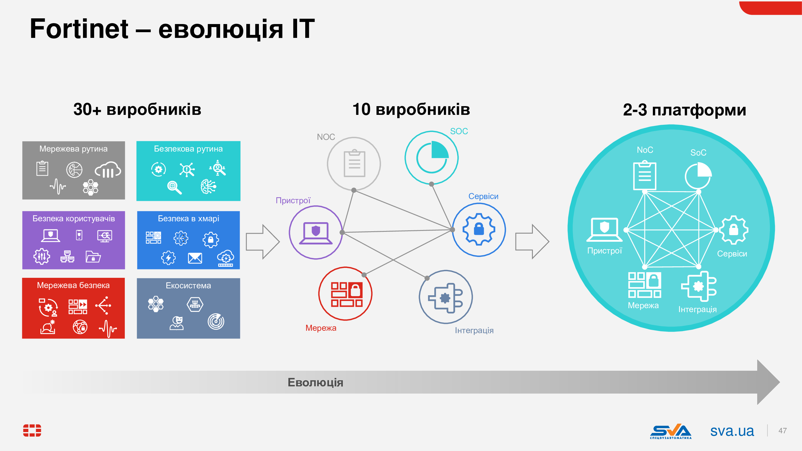 Рішення Fortinet мають уніфікований інтерфейс і надають розширені функції забезпечення безпеки з масштабуванням від базових засобів у віддалених офісах до рішень Enterprise рівня з інтегрованими засобами управління і звітності.
