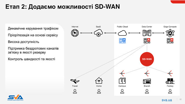 Припустимо, у нас є компанія з центральним офісом у Києві, віддаленою філією та відділеннями у Львові та Дніпрі. Для того, щоб з’єднати всі об’єкти необхідно встановити традиційні WAN-роутери по одному на кожен офіс, а також у дата-центрі або у вашого хмарного оператора. Для побудови такої мережі найчастіше необхідно використовувати багато обладнання та залучати різних регіональних провайдерів. А із зростанням кількості провайдерів у мережі, зростає вірогідність витоку важливої інформації.
