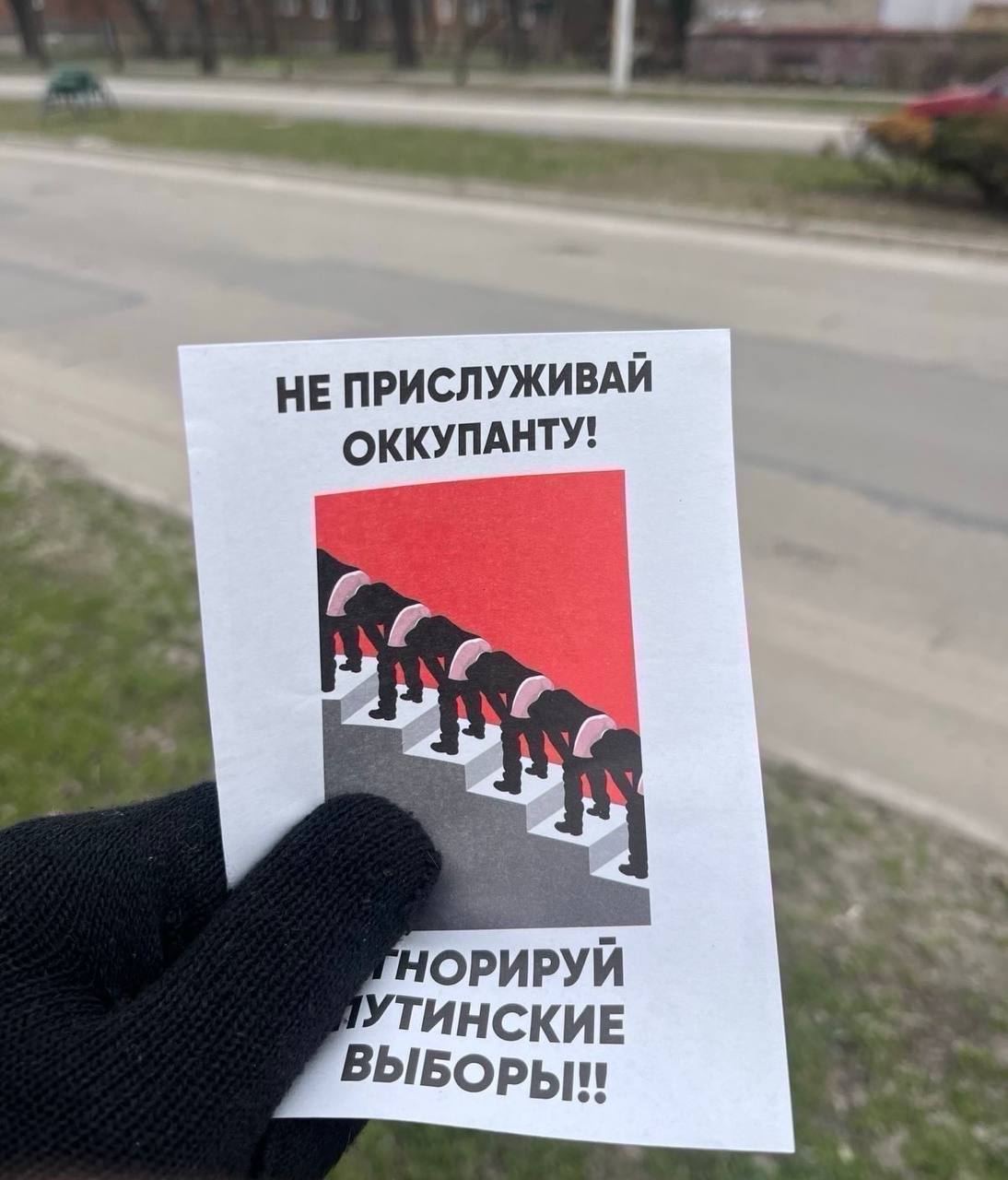 Українські сили спротиву почали акцентуватись не лише на підриві окупаційної військової інфраструктури, але й на зриві цього так званого виборчого процесу. Методи різні – від агітації жовтими стрічками, використання спеціальних міток, які є останнім попередженням як окупантам, так і колаборантам, до більш зрозумілих росіянам традиційних диверсійних методів. Найяскравіші звісно були, до прикладу, такі історії: у день початку дострокового голосування на окупованих територіях Херсонської області, 27 лютого, в Новій Каховці прогриміли два вибухи: один в офісі кремлівської партії «єдина росія», а інший — біля виборчої дільниці. Місцева жителька, яка допомагала російській адміністрації проводити вибори, була ліквідована під час підриву автомобіля 6 березня в окупованому Бердянську.