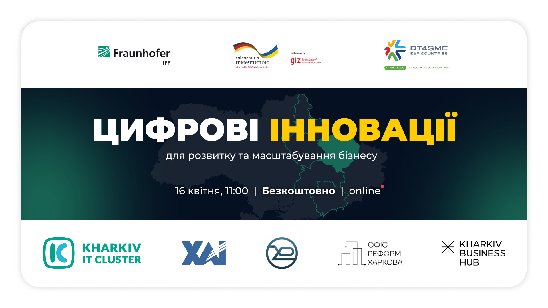 Вебінар організовує німецький науково-дослідний інститут Fraunhofer Institute for Factory Operation and Automation у співпраці із Kharkiv IT Cluster, НАУ «ХАІ», ХНУРЕ, Офісом Реформ Харкова й Харків Бізнес Хабом.
