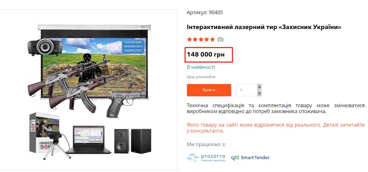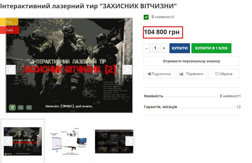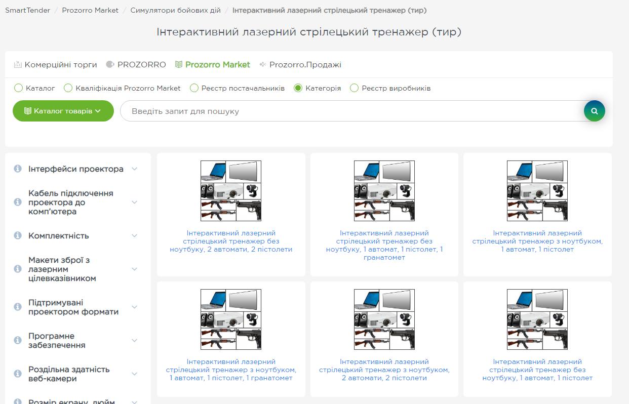 Ось, наприклад, категорія „Інтерактивний лазерний стрілецький тренажер (тир)"
