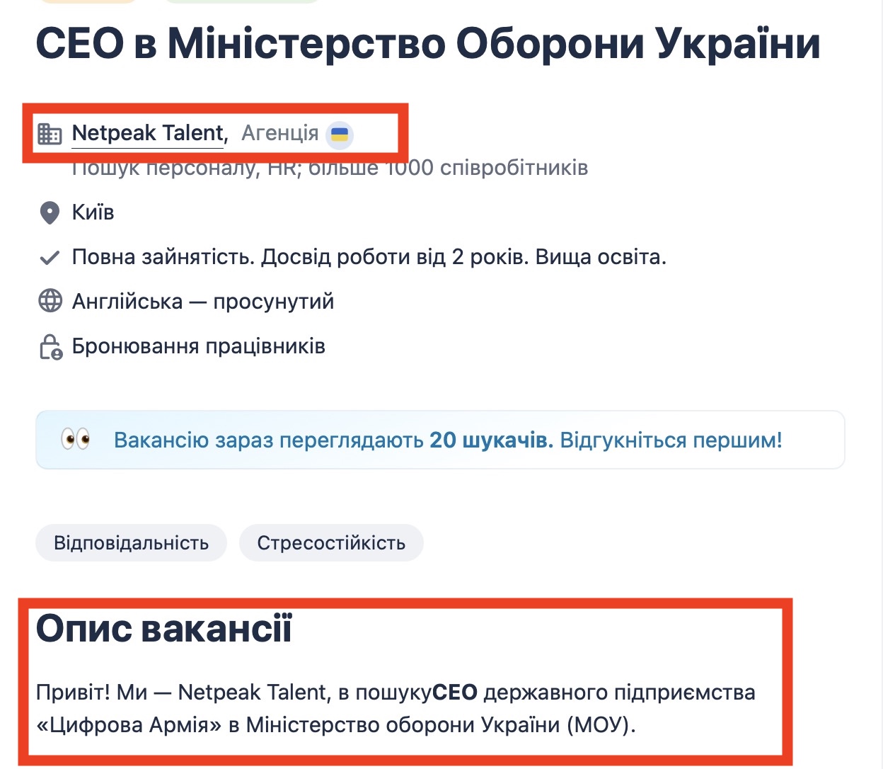 Справа у тому, що підбором керівника ДП «Цифрова армія» займається група компаній Netpeak Group.