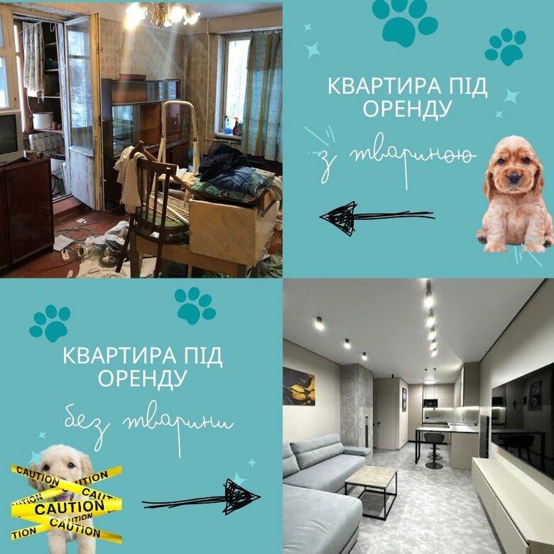 Чомусь власники і ріелтори вирішили, що оренда для таких людей має бути значнооооо дорожчою. Чомусь, вони вирішили, що можна здавати просто квартиру-смітник, зам яку ще й дякувати мають, що їм дозволили тут жити. І найпоширеніший варіант – просто не брати жителів із тваринами. Навіщо вам ці клопоти?!
