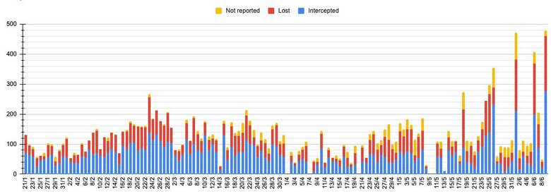 За 12 днів червня ворог випустив по нас 2466 «Шахедів» та «обманок». Наслідок зміненої стратегії — спочатку накопичити, а потім випускати максимальну кількість ударних безпілотників — невтішний для нас. Якщо в січні-лютому відсоток їх перехоплення становив 97%, то в березні — 91%, у квітні-травні — 85%, а в перший тиждень червня — вже 80%. Тенденція може ще суттєво погіршитися за трьох умов.