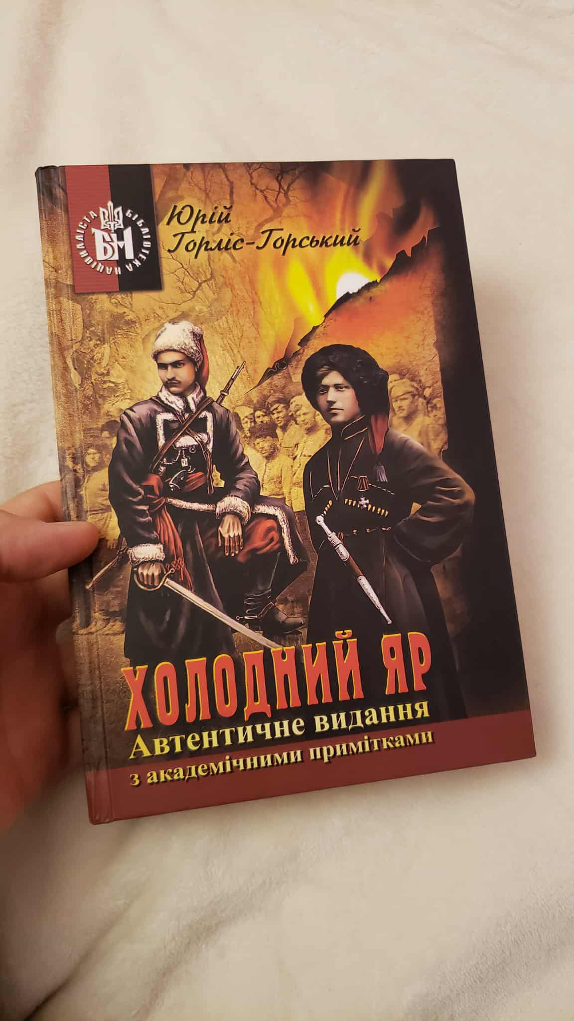 Але рано чи пізно я мав познайомитись з українською художкою. Це сталось на київському ВДНГ: на ярмарку мені запропонували купити «Холодний Яр» Юрія Горліс-Горського, я погодився. Книга виявилась непростою: на рівні мови – незвичною і часом складною, на рівні змісту - блискучою.