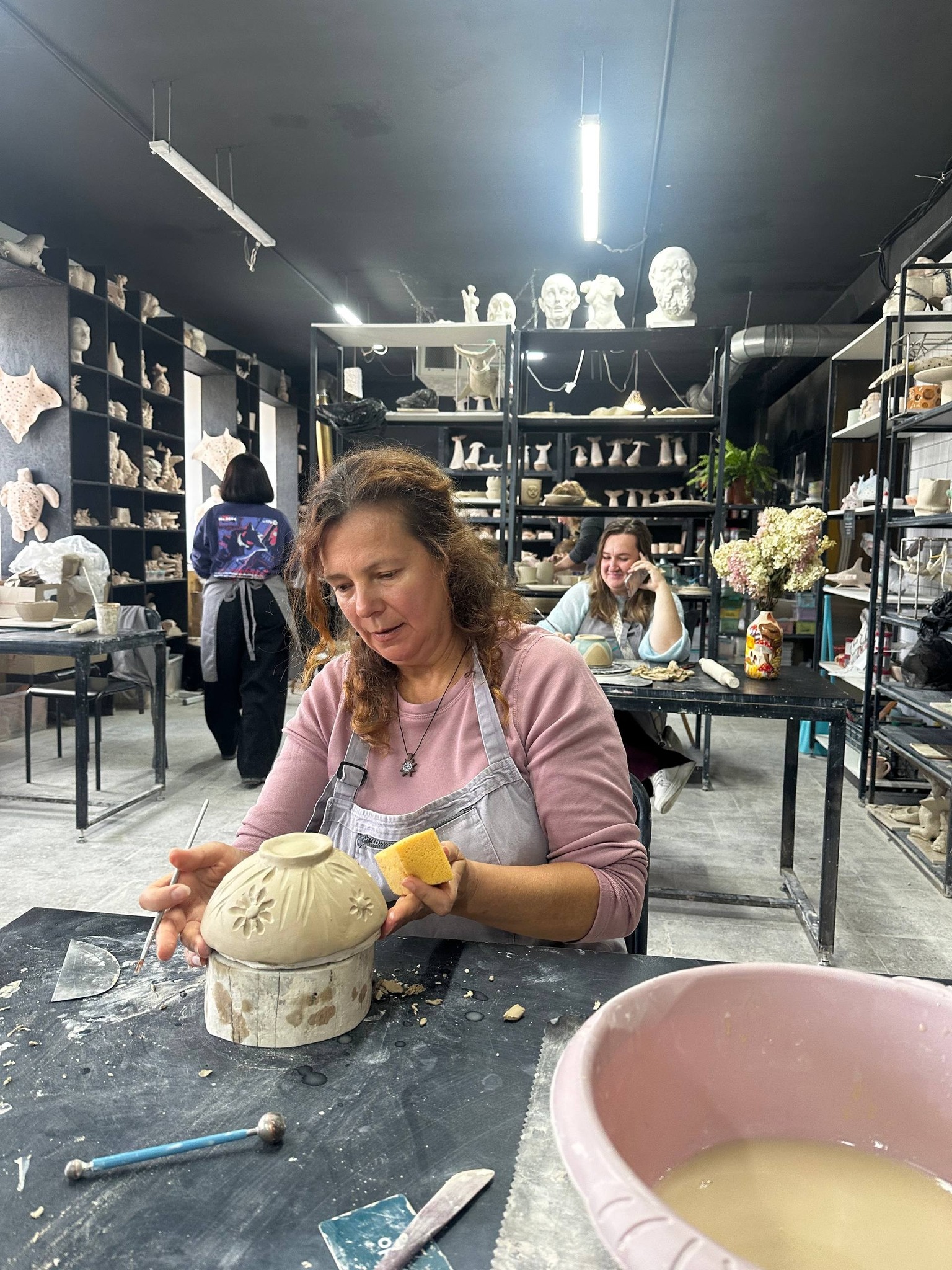 Заняття відбуваються у студії KUST Ceramics у Києві під керівництвом досвідчених гончарів. Учасниці мають змогу відчути себе творцями, зануритися у процес роботи з глиною, дати волю фантазії й отримати той самий ресурс, який допомагає відновлювати сили й знаходити внутрішню опору.