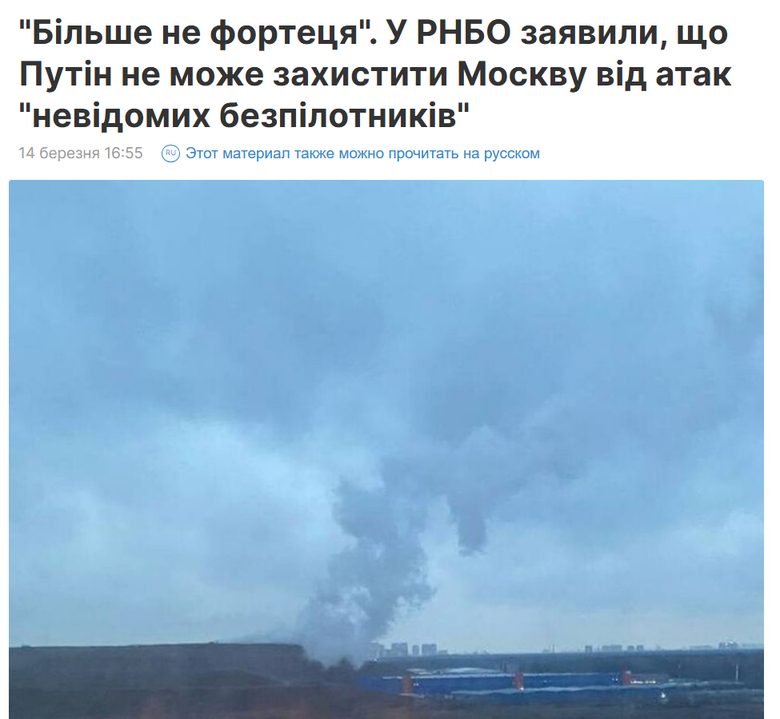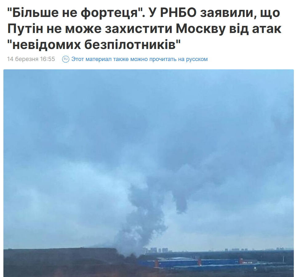 14 березня 2025 року наши дрони долетіли до центра москви. Всього було запущено 24 дрона. А 11 березня 400 інших хороших дронів не долетіли навіть до краю москви.