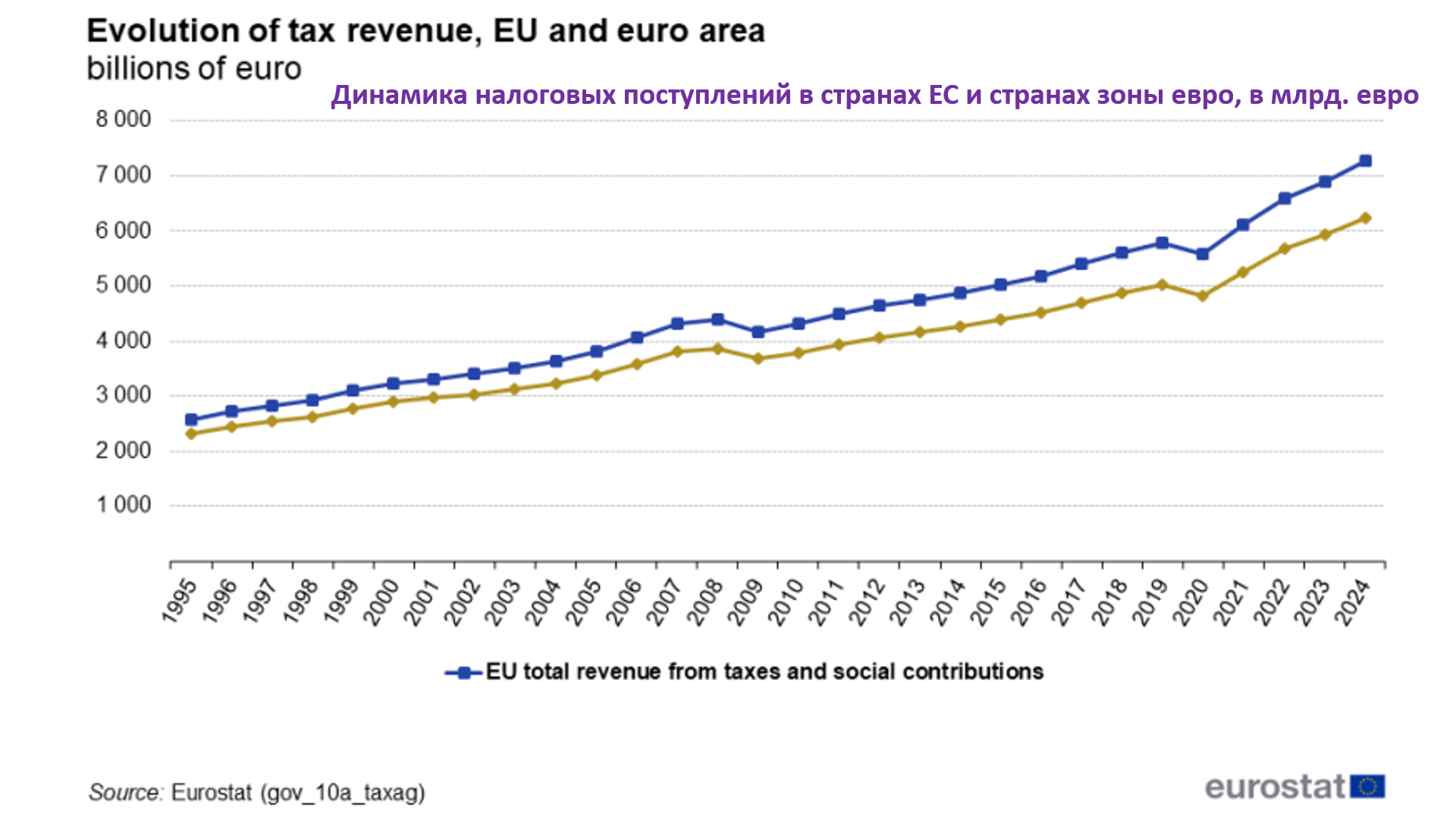 Налоговые поступления составили 87,8% общих доходов органов госуправления в ЕС в 2024г.