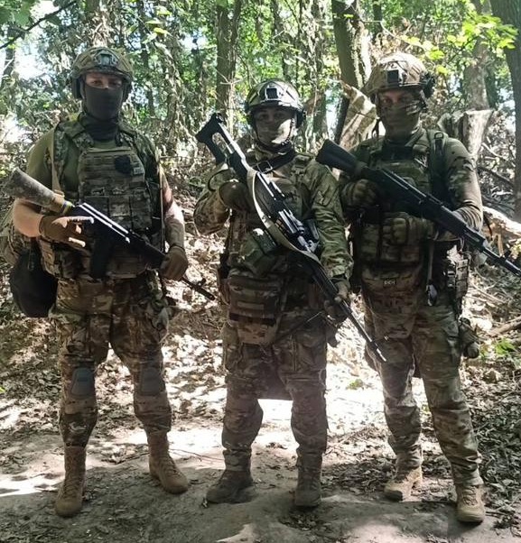 Все йшло за планом: хлопці десантуються, успішно підривають дамбу, рухаються до евака. Женя висовується з кулеметом, щоб прикрити їх вогнем, і тут FPV летить йому просто у голову. Важкий 300, дуже важкий. Осколок у шию. Як він себе замотав, я не знаю. А ми перед тим у «Ахмата» машину забрали, цивільну: 14-й «Жигуль», Ладу-Калину. Малюємо позначки, Женю в машину, і на кордон в лікарню. Час йшов буквально на хвилини! Слава Богу, ми його довезли, він вижив.