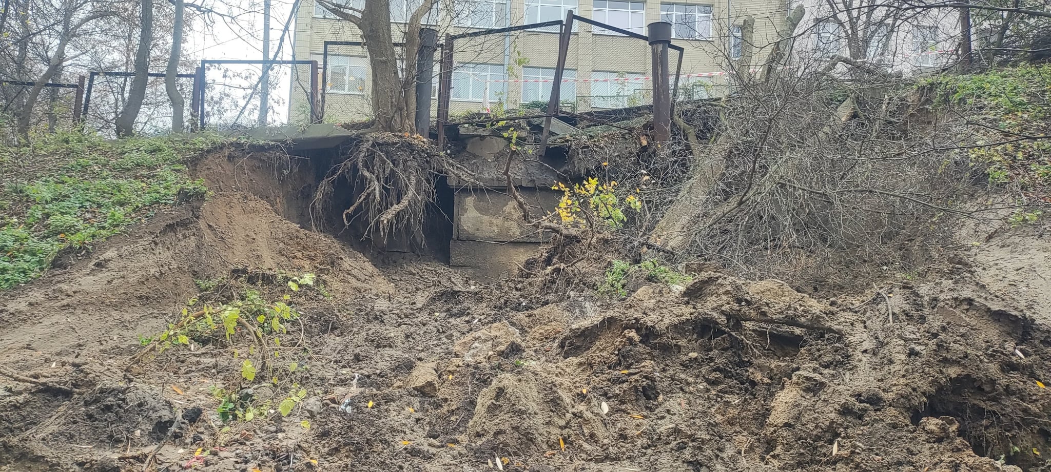 На місці зсуву помітне нове підтоплення і новий мікрозсув. На схилах поруч також оголилися блоки старих укріплень, а це вже небезпека для будинку вище по вулиці Панаса Мирного та бізнес-центру. З іншого боку постраждало будинку також є аварійний колодязь і стоки, що видно неозброєним оком і викликає занепокоєння сусідніх ОСББ.