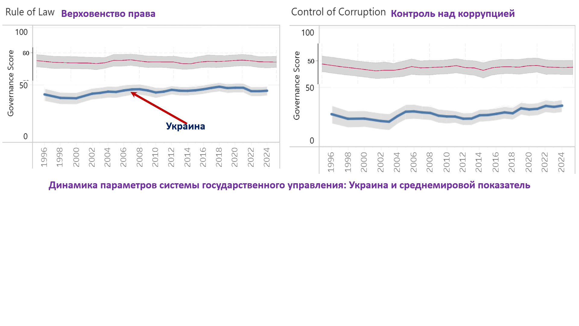 2) Качество государственного управления прямо и косвенно влияние на темпы экономического роста. В Украине нет управленческого потенциала, способности (capacity) для управления такими огромными ресурсами и активами через существующие инструменты монетарной, фискальной и регуляторной политики. За 35 лет ни один состав правительства, ни один президент и парламент не брался системно за решение проблемы низкого качества госуправления. Повышение уровня качество госуправления до среднеевропейского добавило бы дополнительные 2 – 3 процентных пункта ВВП ежегодно.