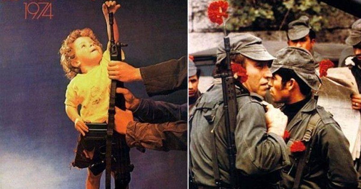 Це сталося у 1974 році у Португалії і отримало назву “Революція гвоздик” – тому що у день повалення тиранії цивільні вставляли гвоздики у дула рушниць повсталих армійців.