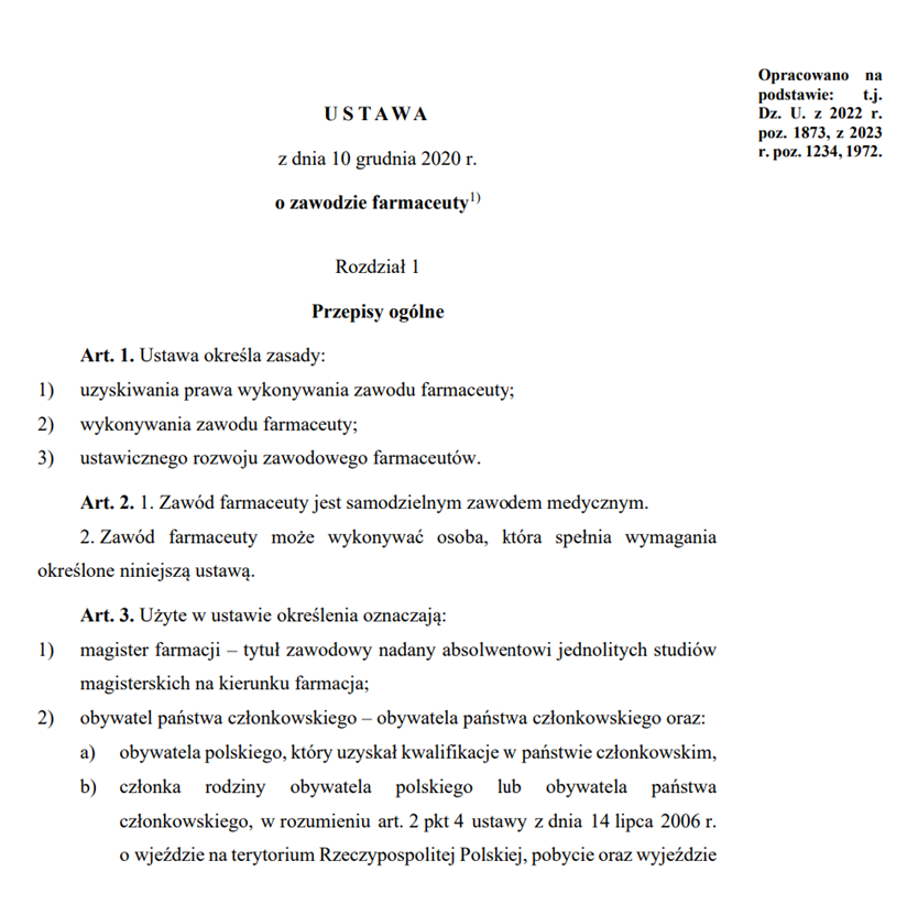 У 2020 році в Польщі ухвалили Закон про професію фармацевтів (o zawodzie farmaceuty) — документ, який кардинально змінив статус фармацевта і модель роботи аптек.